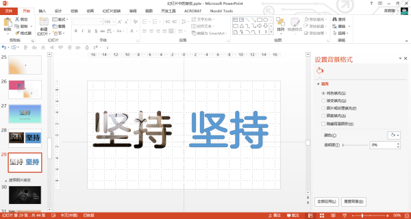 我深以为这个小例子的配图,直接将整个流程都说明了,在此就不重复讲了。具体可以参照前面关于“坚持”那一页的制作过程,也可以参照前面的文字:幻灯片中的布尔运算 - 知乎专栏