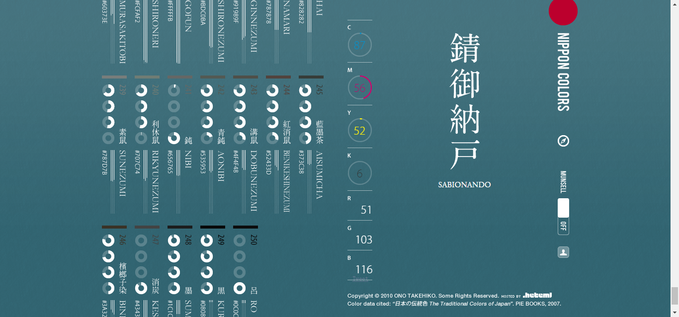 这套颜色体系是我自己一直喜欢的,总共250种颜色。平时对于颜色不好把握的时候,也会去找找。这个网站本身的可玩性也比较高,建议使用Chrome或者Safari浏览器
