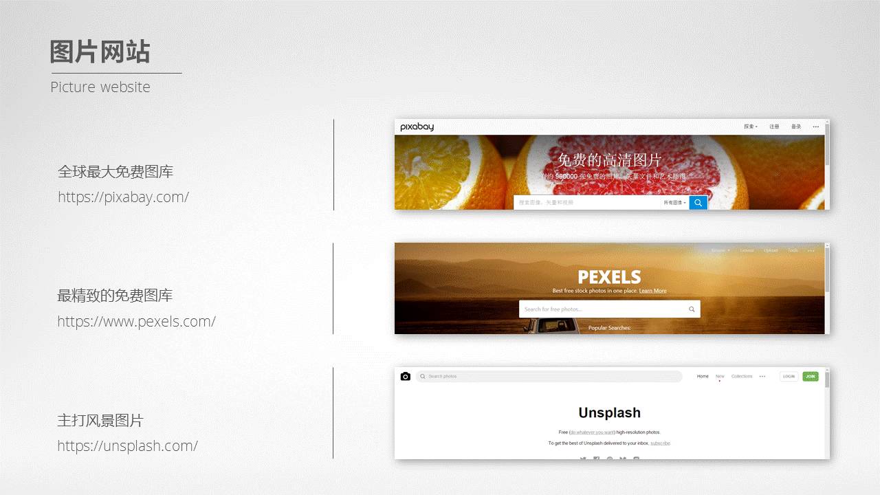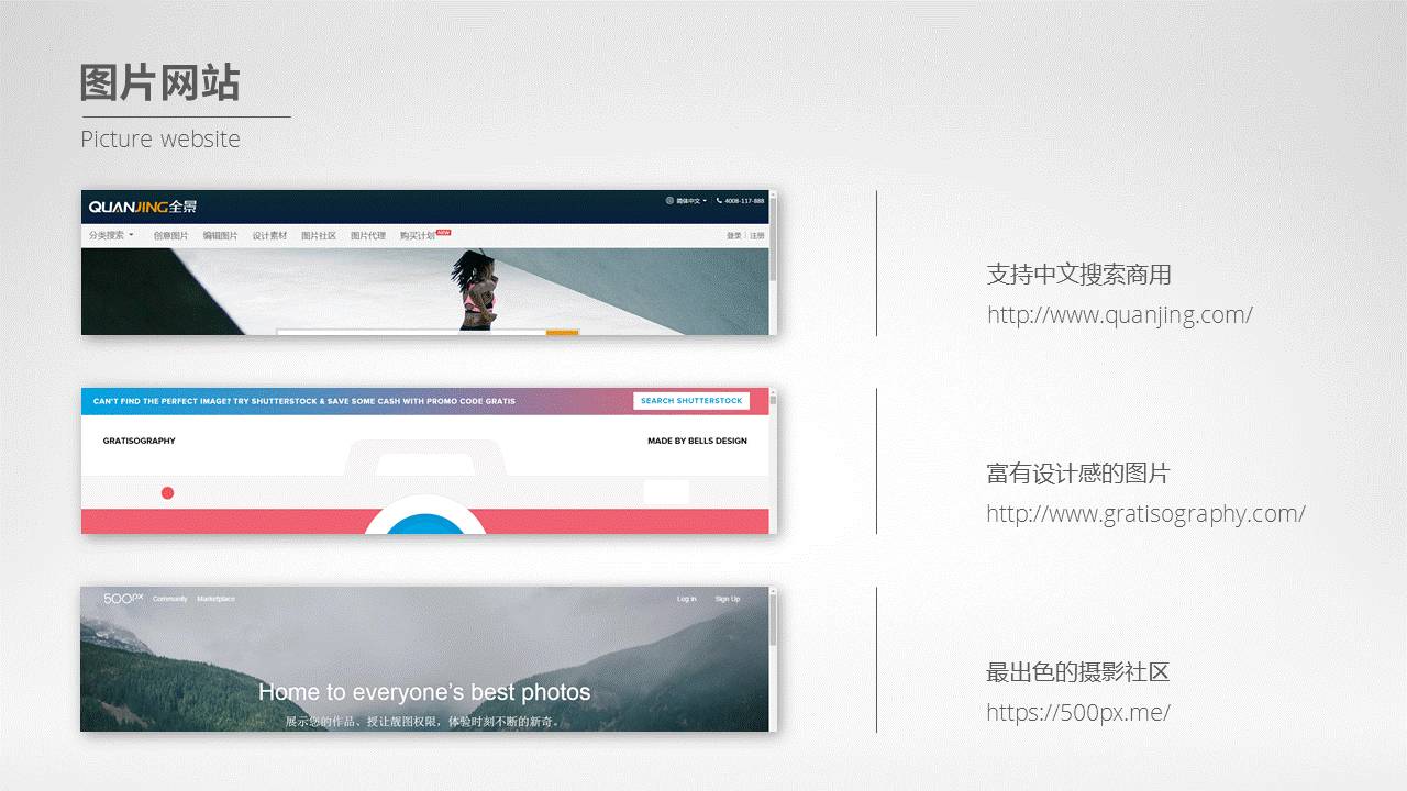 只有知道了合理搜图的方法之后,图片网站的存在才拥有了意义。所以,接下来向各位推荐几个还不错的配图网站,分别是: