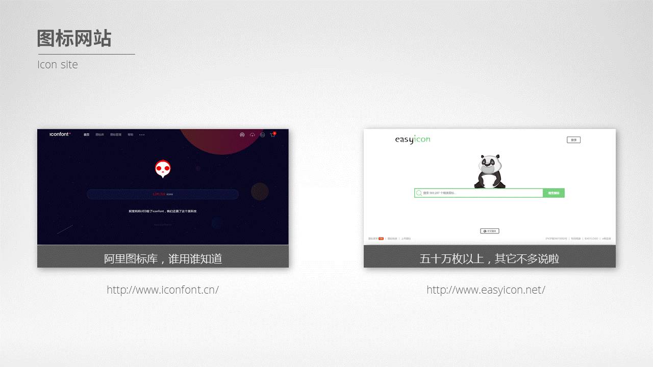 好了,说完了方法,接下来,就要向各位提供工具了。都有哪些网站,可以快速地找到海量的小图标呢?