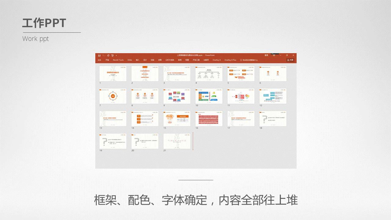 等等,上面这些答案,都是正确的,但如果仅知道这些零散的方面,可能,你依旧做不出一套优秀的幻灯片。