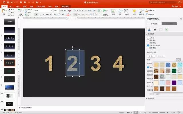 纹理在PPT中的应用也相当广泛,纹理填充的数字,有一种质感,既显得大气,又带有层次感,非常漂亮。