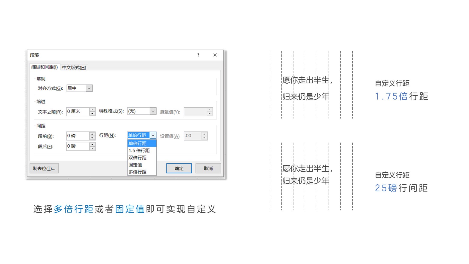 多倍行距和固定磅值的区别