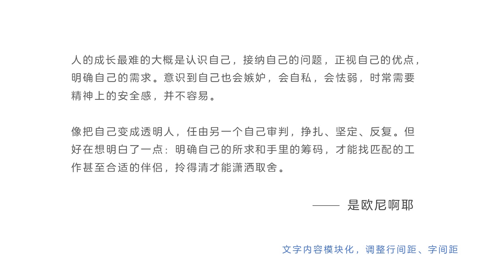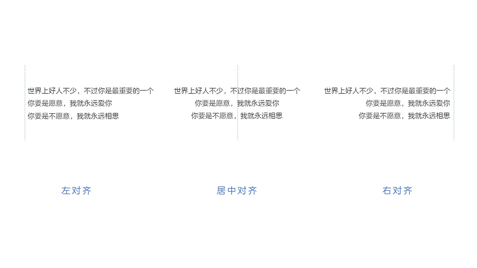 有的时候,我们需要在文本中引用不同的诗词或歌词等多行分离的文本内容,这一类文本选用的对齐方式,因版面而异:
