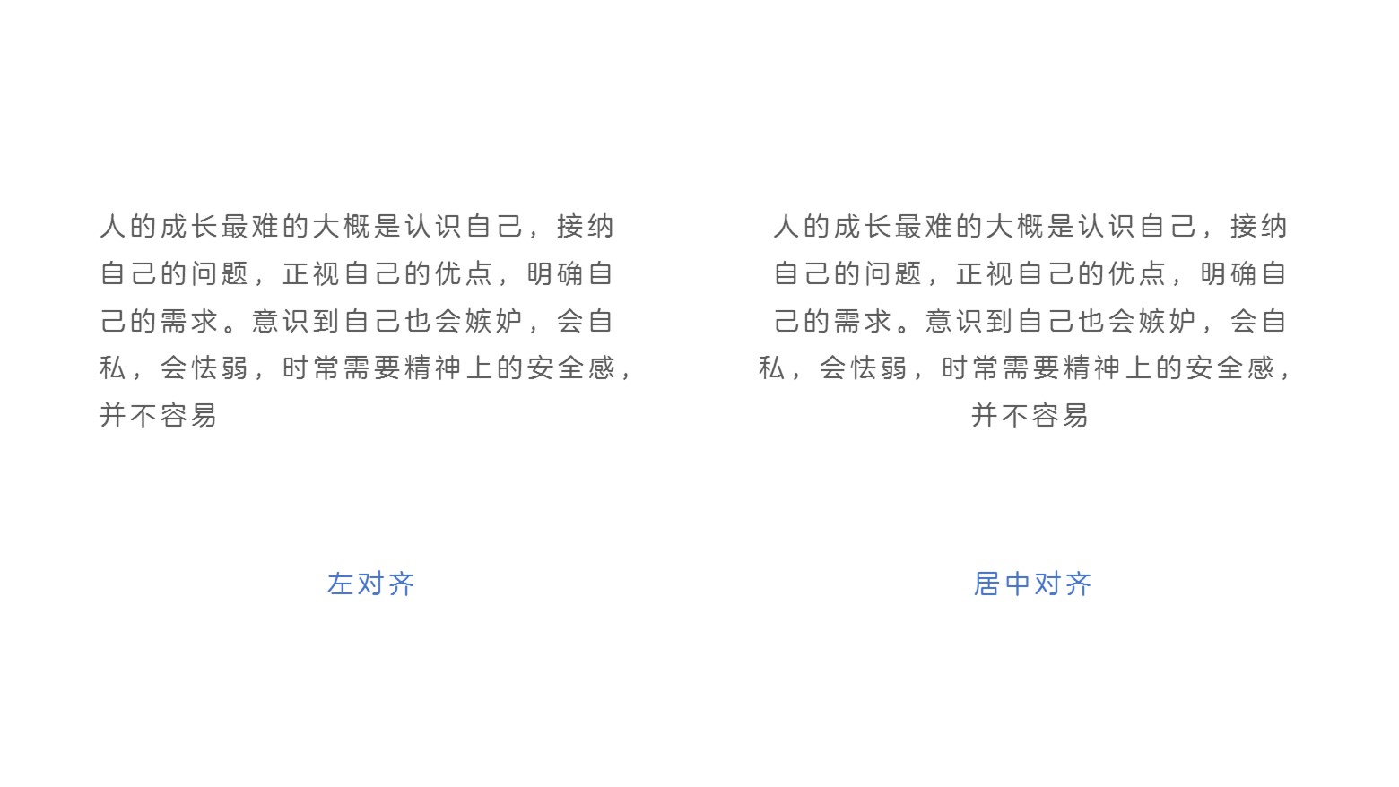 对齐的对象分为连续段落的文本和多行分离段落的文本。对于这两种文本对象,需要去使用不同的对齐方式。