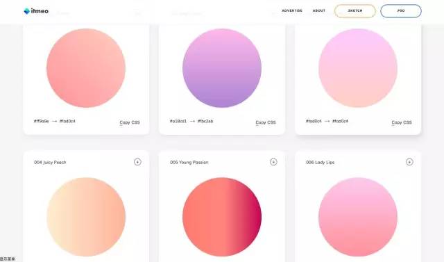 这也是一个分享美丽渐变色彩为主的渐变色网站,里面有接近上百种渐变配色方案,设计师可根据自己风格来选择搭配。
