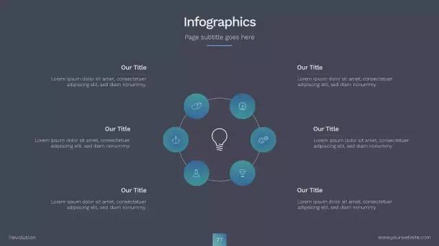 比如,我们拿到下面这样一页PPT,想将正文部分进行图形化设计。通常的做法都是先插入各种形状,或者插入SmartArt图形,然后进行文本的填充。