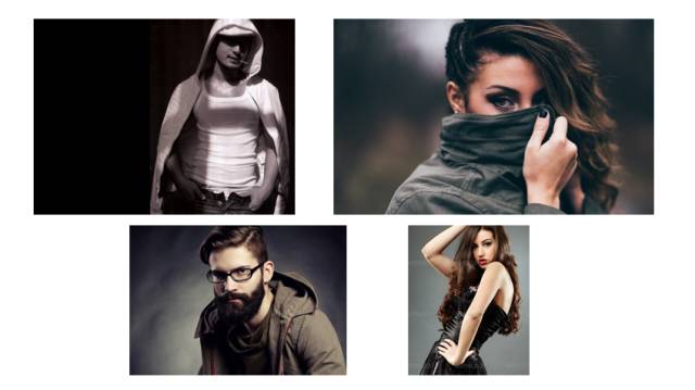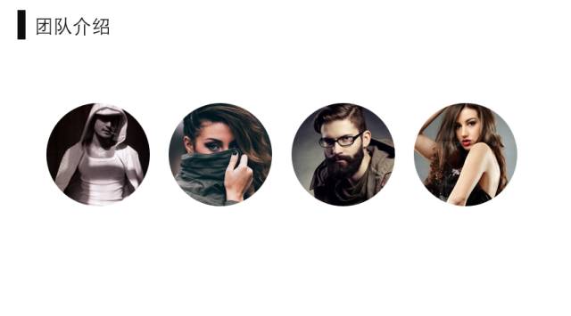第一步:插入4张人物图片,再在插入4个圆,然后将圆摆放在图片中的合适位置。