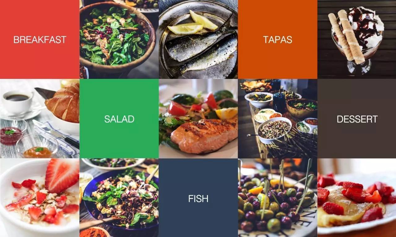 - 修改之后,页面显得更加丰富,满屏的食物,更加让人产生食欲。