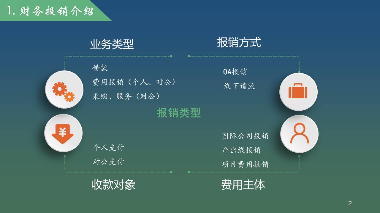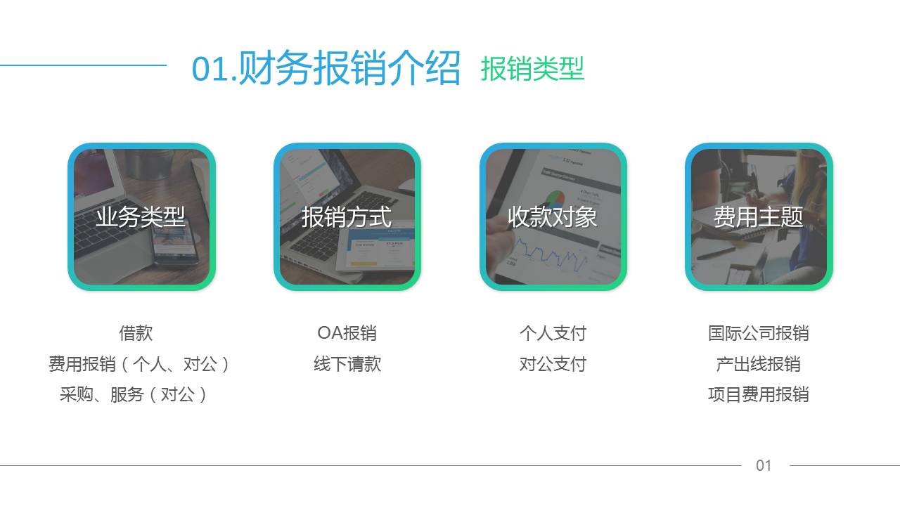 此页原稿件想说明的是报销类型有四类,于是基本排版上的优化和完善,以四等分的矩形进行排版即可。