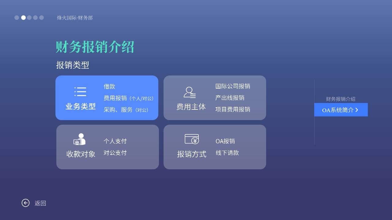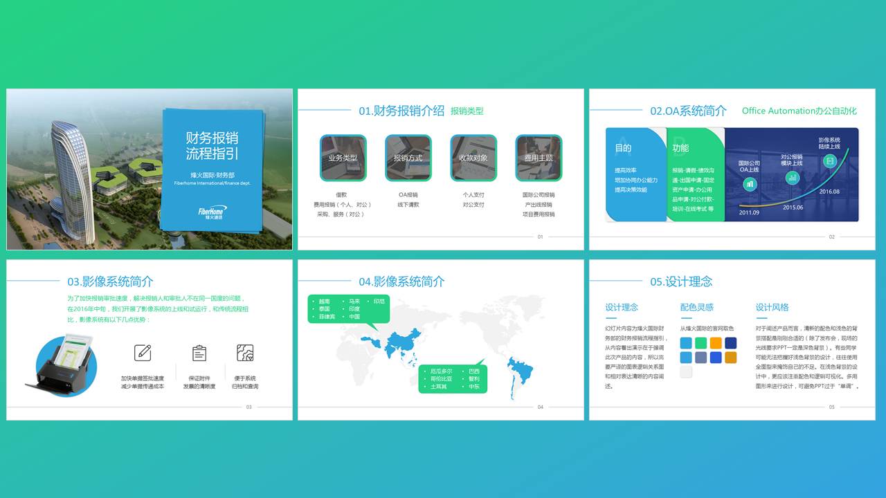 封面为烽火国际的财务报销流程指引,可以保留原来的封面,利用蒙版让文字在页面上看得清晰,同时,要避免字体过小的问题。