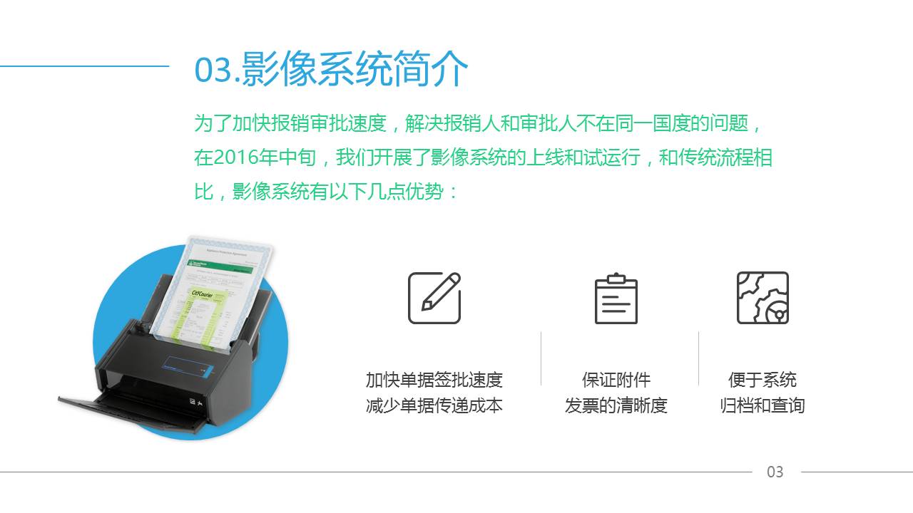 此页说明的是OA影像系统的三大优势,一一列举出来即可,原稿的问题在于不够美观。此处把三大优势利用三等分矩形进行排版 加上ICON?页面会美观很多。