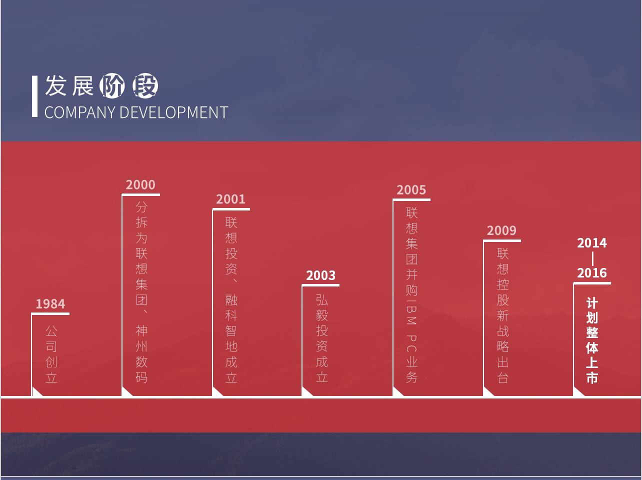 - 原稿要体现的发展,看起来不够直观清晰。所以在修改时利用直线式时间轴将年份和事件对应排列。另外,对年份和事件进行设计,突出重要的阶段。