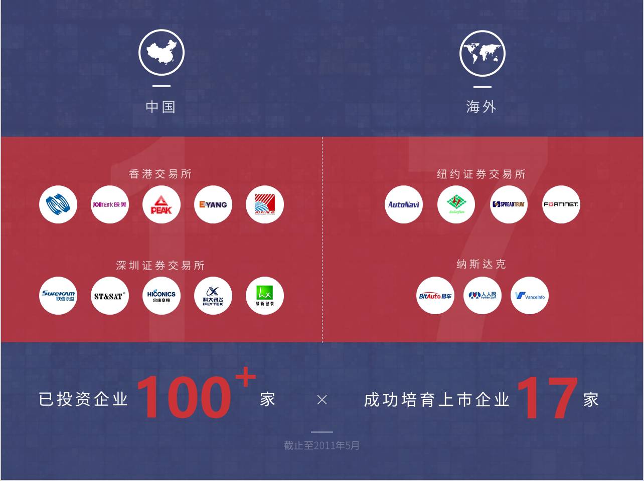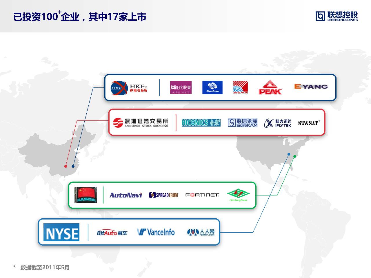 - 原稿中表明这17家企业在2个国家4个交易所上市,所以地图显示最为直观。