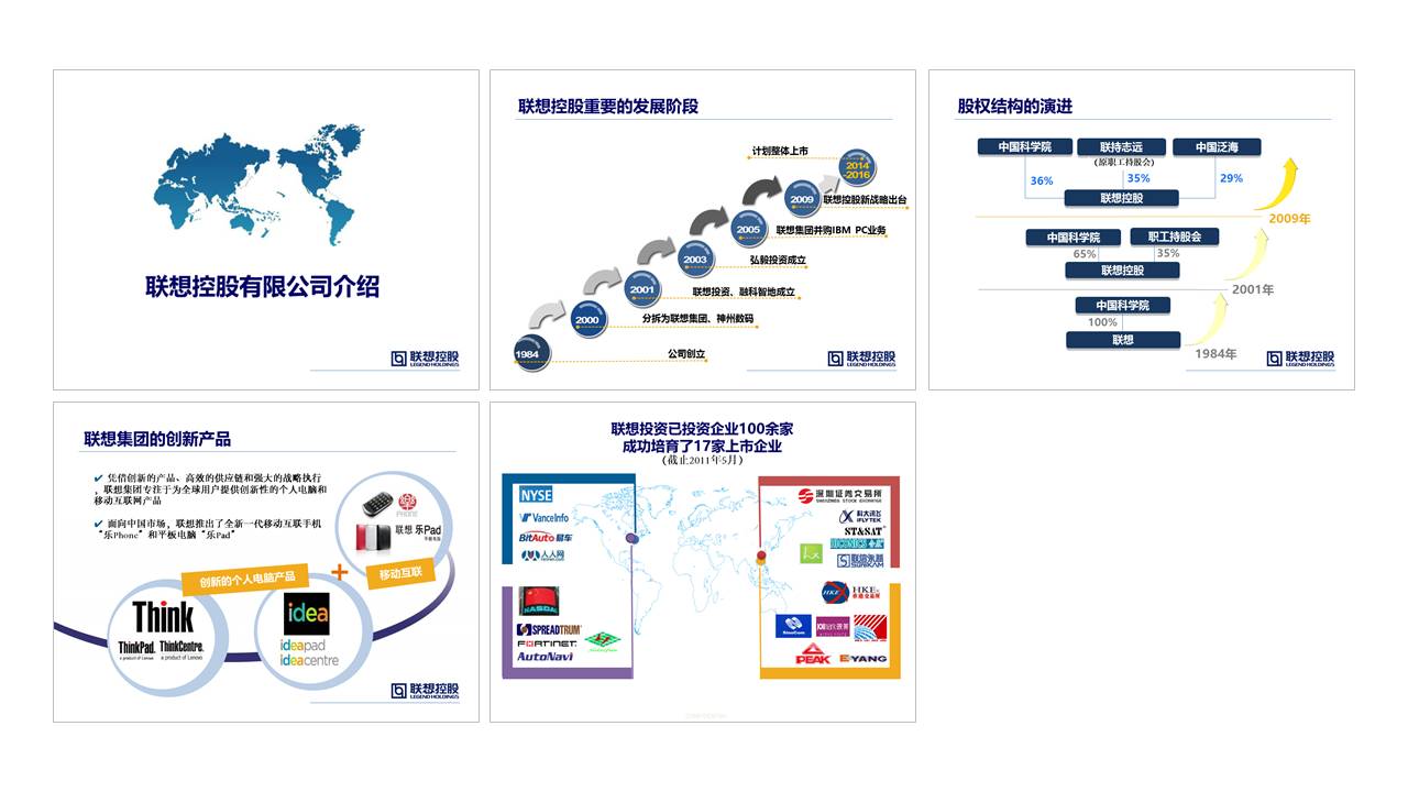 刘天赐作品在这两套幻灯片中,大家可以看到,色块的使用,都非常的合理。利用了色块很好地表现出了一定的设计含义,比如放在 LOGO 的底部,以及用来表现不同的数据量等。