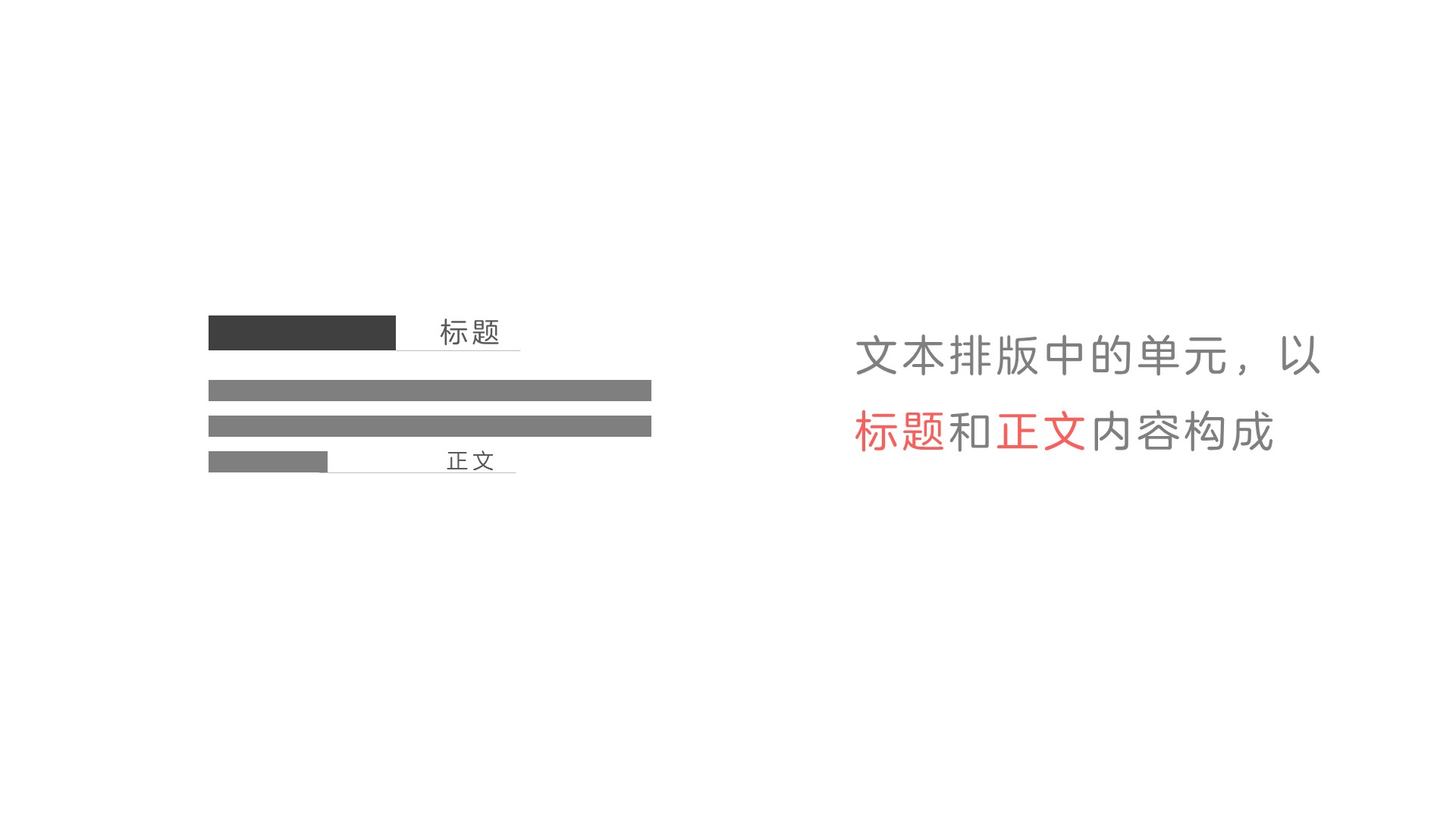 下图中标题、正文内容的区别可以通过文字大小、颜色等方式进行内容区分,保持标题和正文的间距,从视觉距离上区分标题和正文。