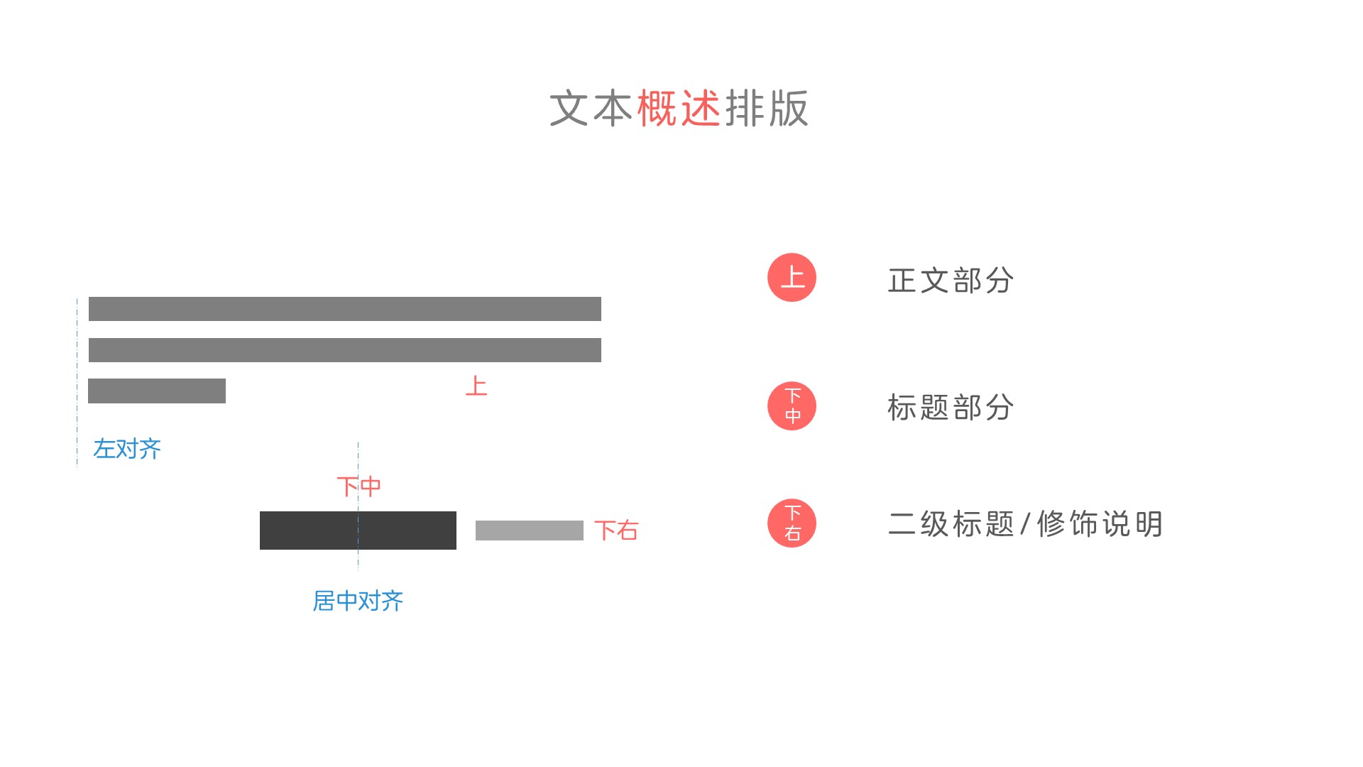 标题呈居中对齐方式、正文部分左对齐方式,这里的二级标题/修饰说明,位于标题的右侧区域。和2.4.1不同的是,这里的标题和正文整体呈现下-上结构