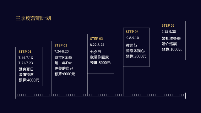 - 营销计划上的活动有时间的先后顺序关系,采用时间轴的设计可以更清晰表达。
