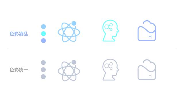 但是,如果采用统一色彩风格的图标,就会好很多,比如下面这个例子: