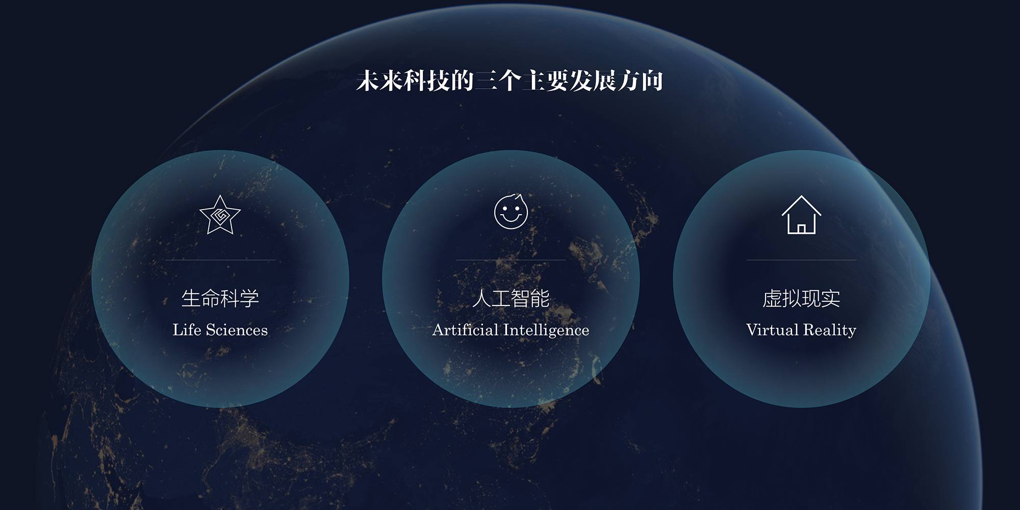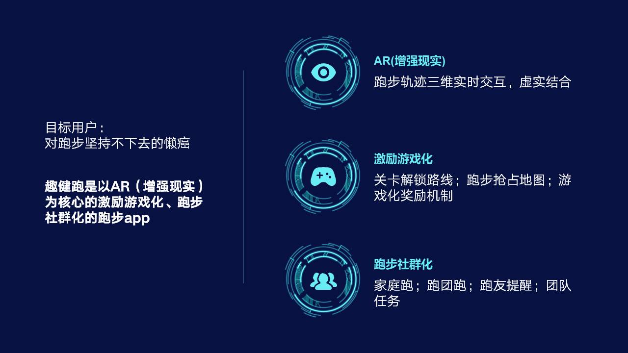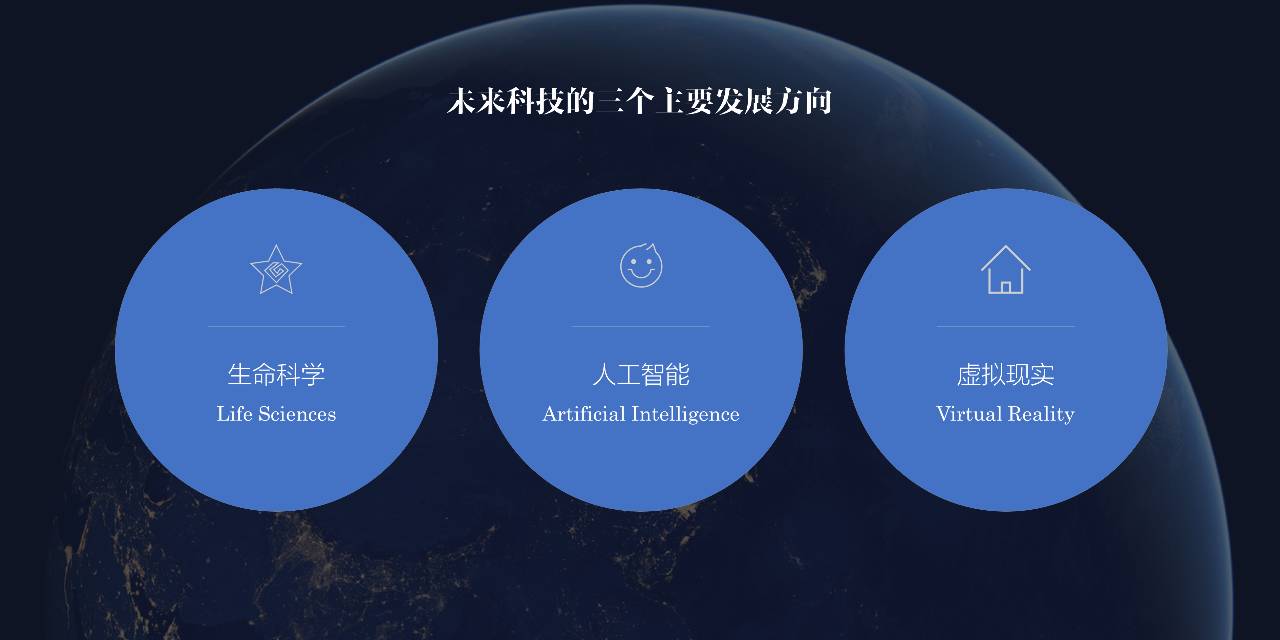 比如我们看到下面这页科技主题的幻灯片,使用3个圆形来表现3个方面,勉强也能说的过去,但问题就在于缺乏设计感。