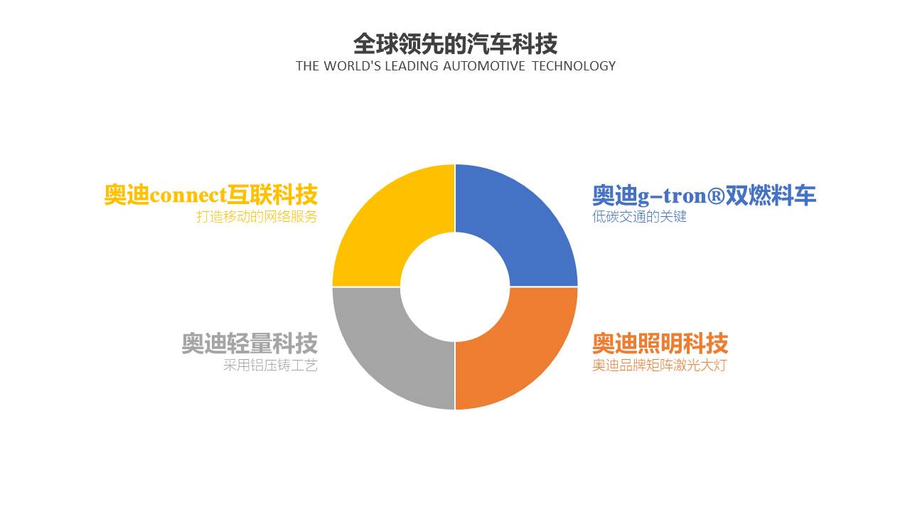 这样做虽然也能够表现出4个方面的内容,但是,视觉效果有点缺乏,少了点汽车,科技相关的视觉感。所以,我们就需要寻找一些跟科技,汽车等关联的修饰物。