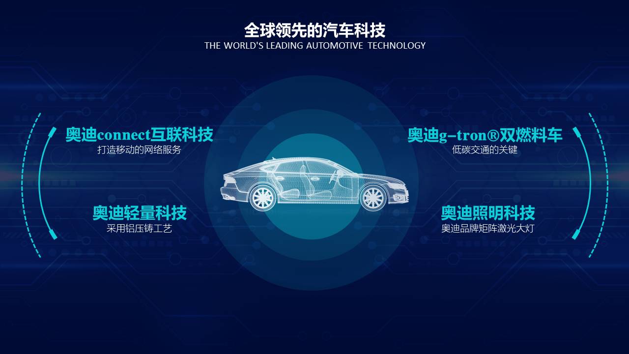 科技感背景;奥迪汽车模型;两侧的科技感线条;