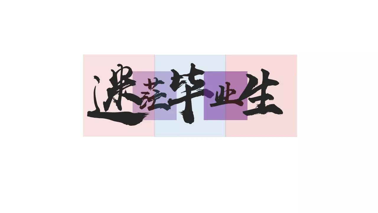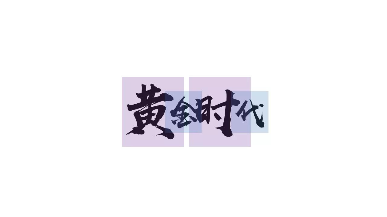 比如上面的幻灯片,我们用把文字的色块加上,我们就可以清晰的发现,四个字的字号是不一样的,“黄”和“时”比较大,“金”和“代”比较小,然后排列方式是上下居中,所以整体上形成了错落有致的排版样式。