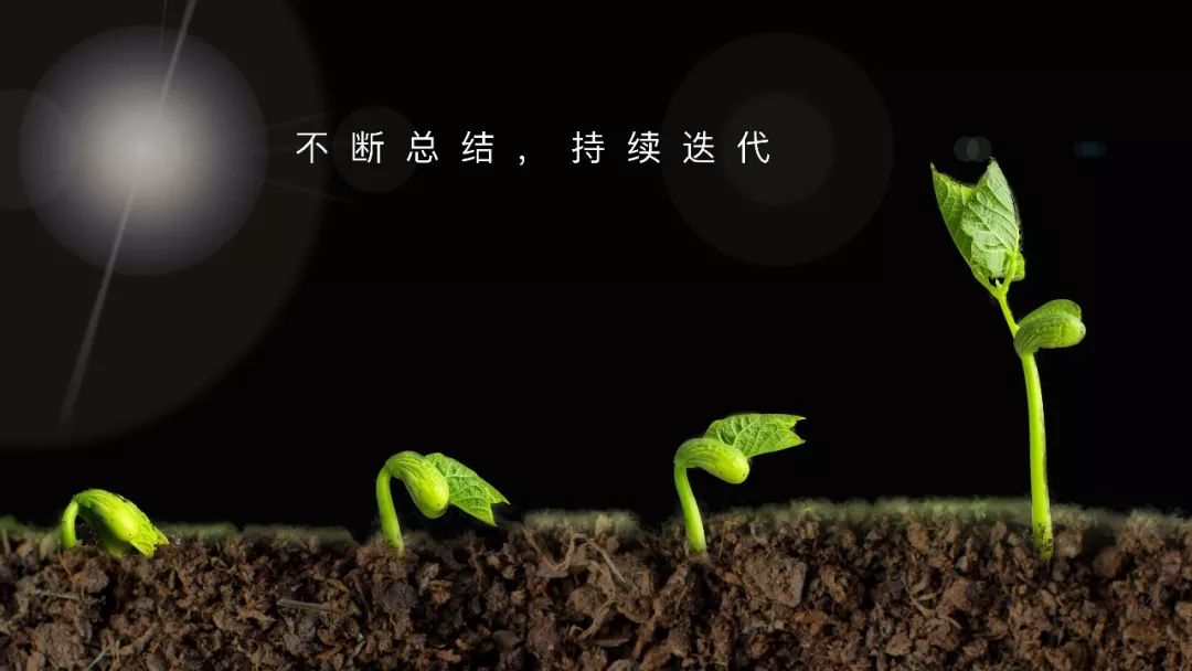通过一个幼苗的成长过程来辅助表达不断迭代,持续进步这样一个想法,配合擦除出现动画整个过程生动形象