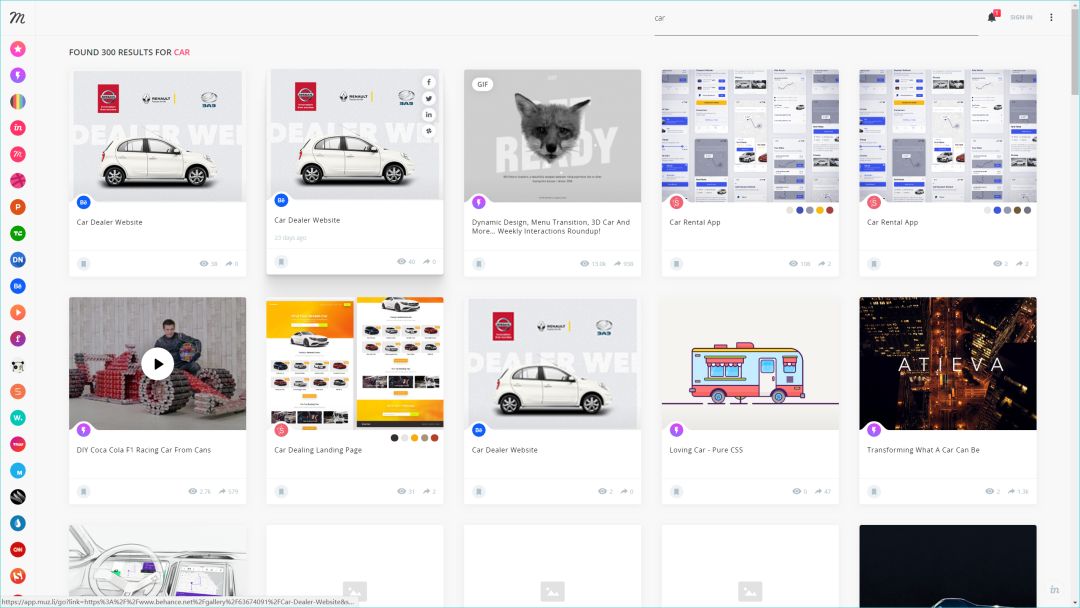 当你搜索某一个领域的优秀作品,比如汽车,它显示的结果,也是来自这些网站。