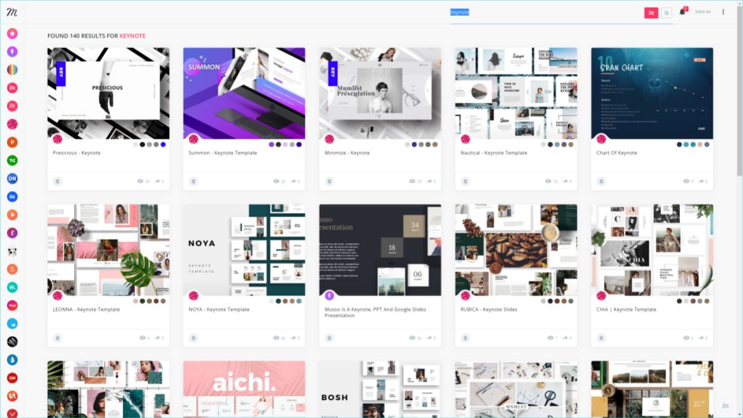 再比如,当我们搜索?Keynote?,全网所有跟它相关的优秀作品,都会出现在你的面前: