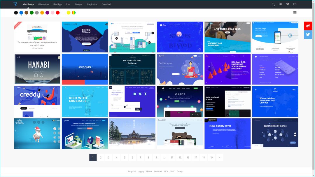 跟上一个网站类似,它也收录了很多优秀的网页设计作品,它的特点在于,你可以基于色彩对作品进行筛选。