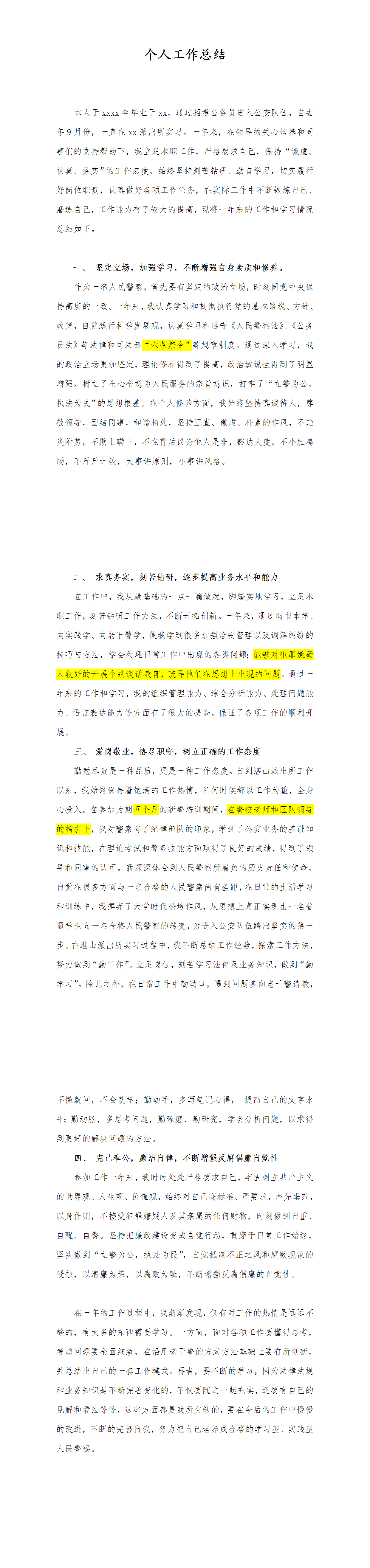 资料来源:新入警的人民警察年度工作总结.doc,非商业用途,侵联删