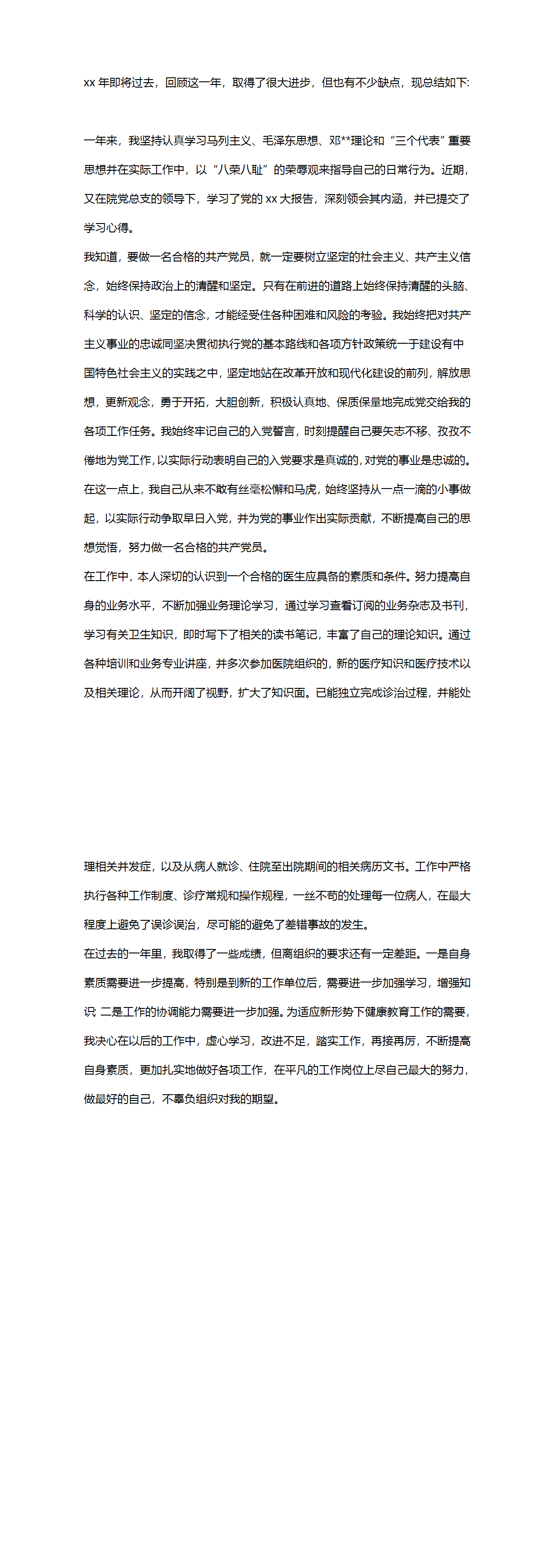 资料来源:医生个人工作总结范文1.doc,非商业用途,侵联删