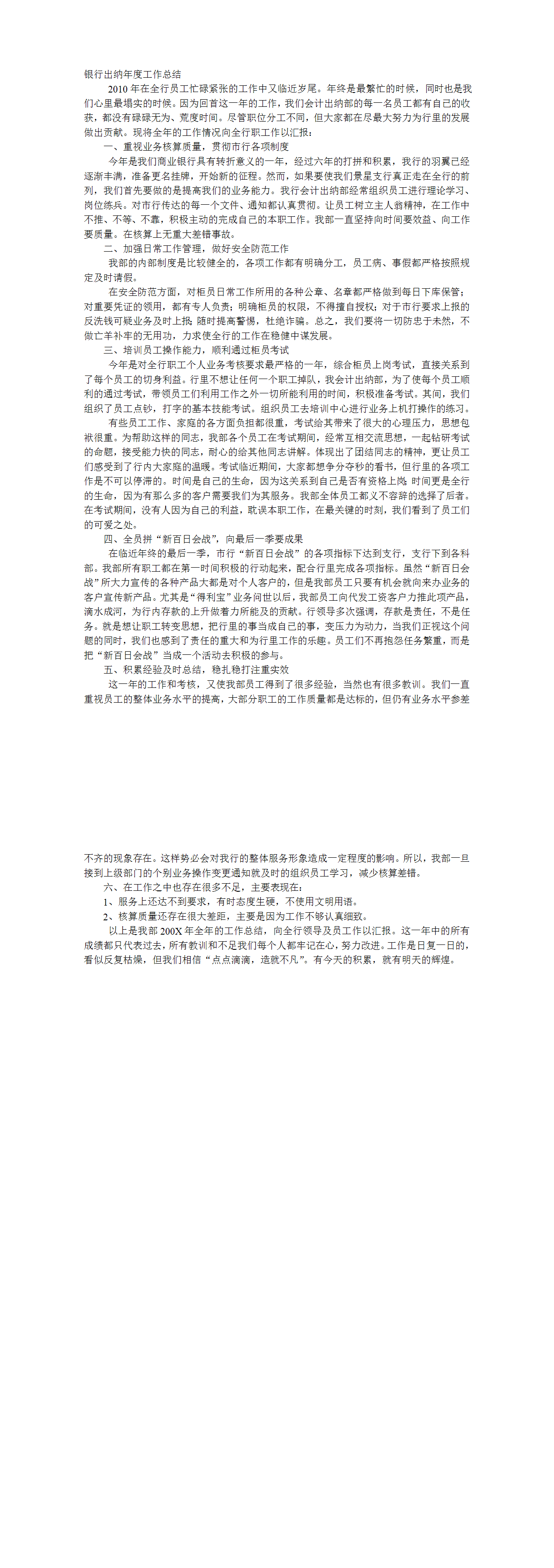 声明:本信息来源于银行出纳年度工作总结.doc,仅用于学习和技术交流,如有侵权或其他问题,请联系本站处理。
