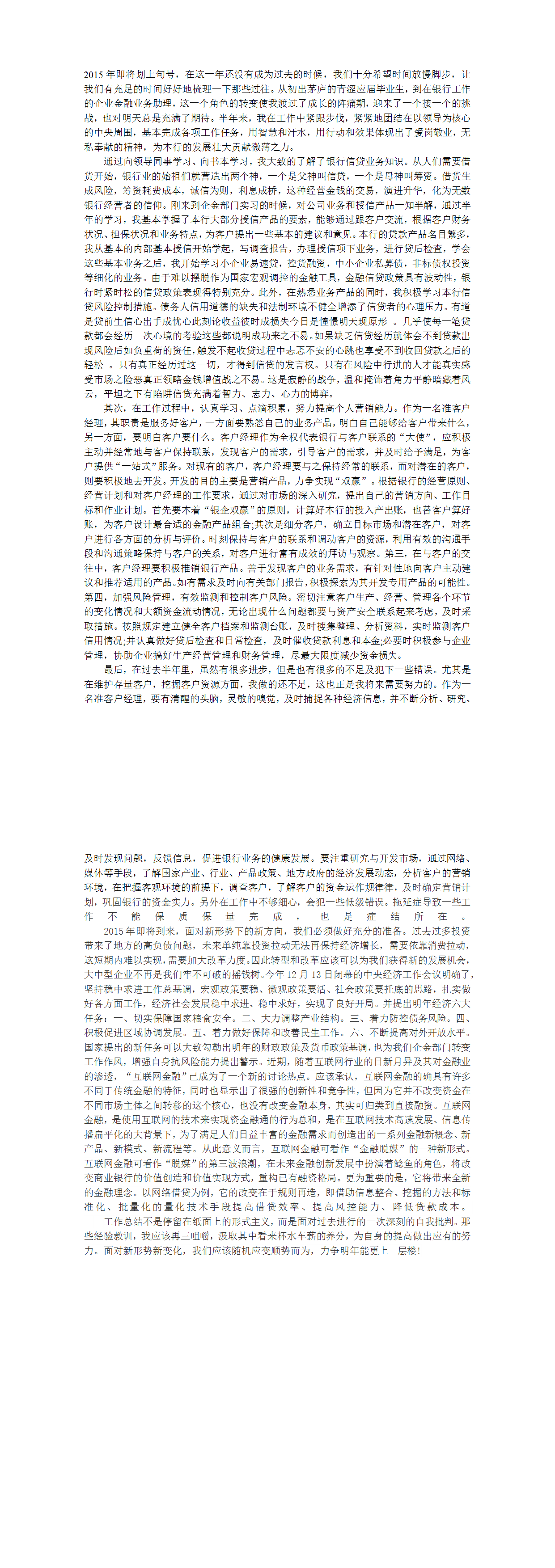 资料来源:银行客户经理2015年工作总结.doc,非商业用途,侵联删
