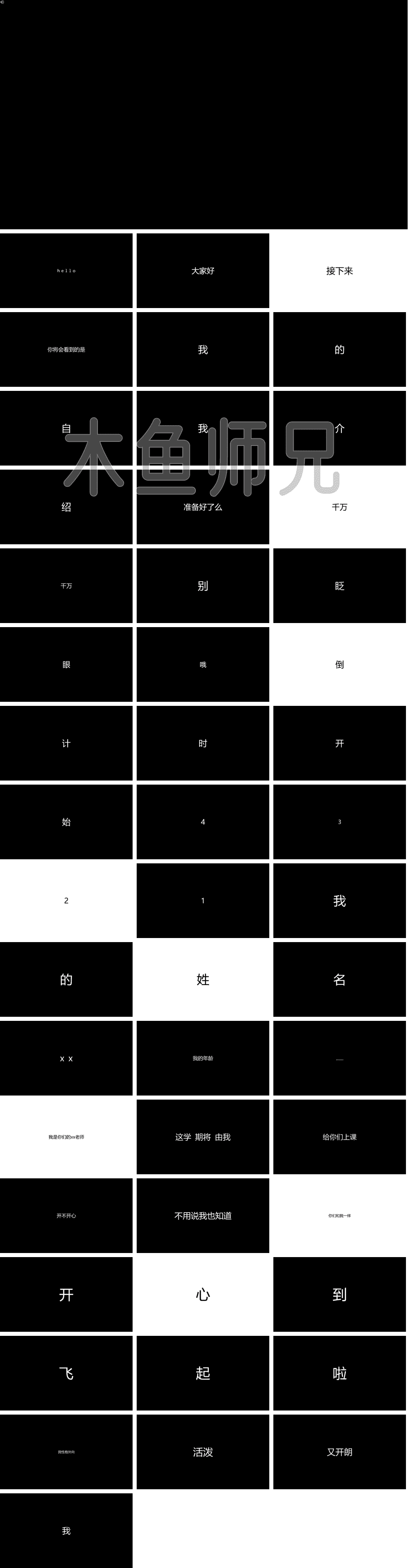 上一篇:快闪PPT模板宽版-个人介绍模板7自我介绍开场白快闪PPT作品.pptx 下一篇:快闪PPT模板宽版-公司招聘模板1招募令快闪.pptx