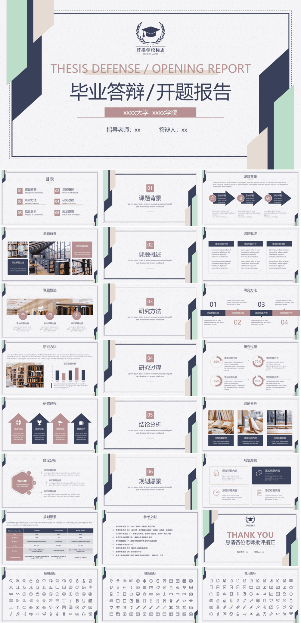 合集:学术答辩模版系列-09 扁平风PPT模板